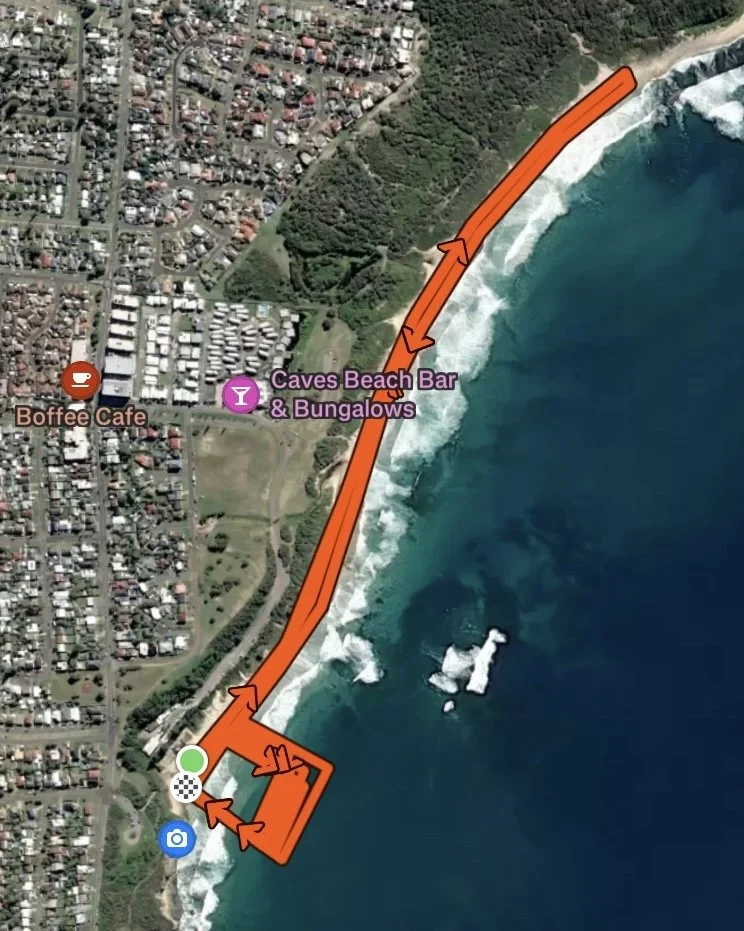 Run 2: Caves Beach to Spoon Rocks Breakwall (south end) 2km